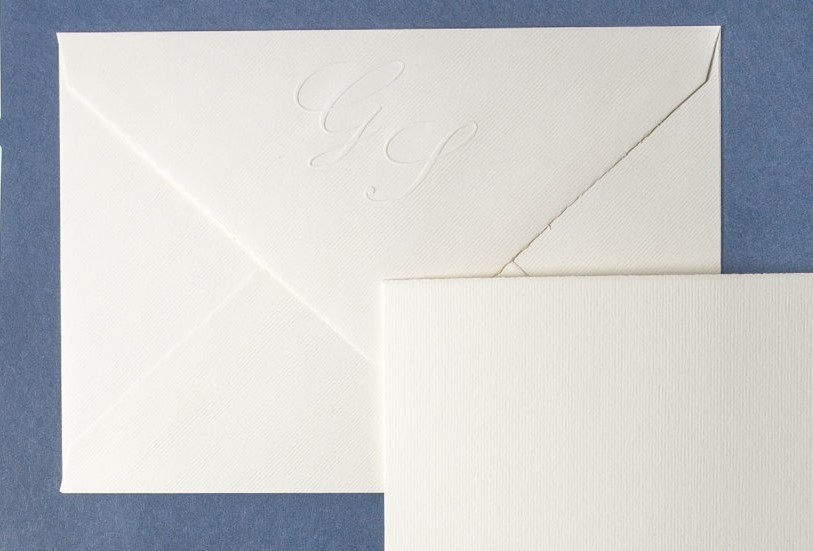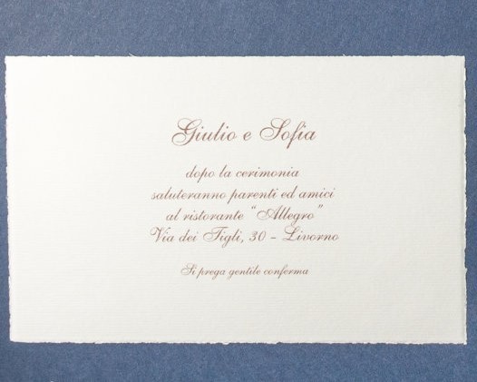 Partecipazione di matrimonio Classica in cartoncino Acquerello (rigato) avorio con Taglio Dolce. Formato a 'cartolina' o 'vassoio'.