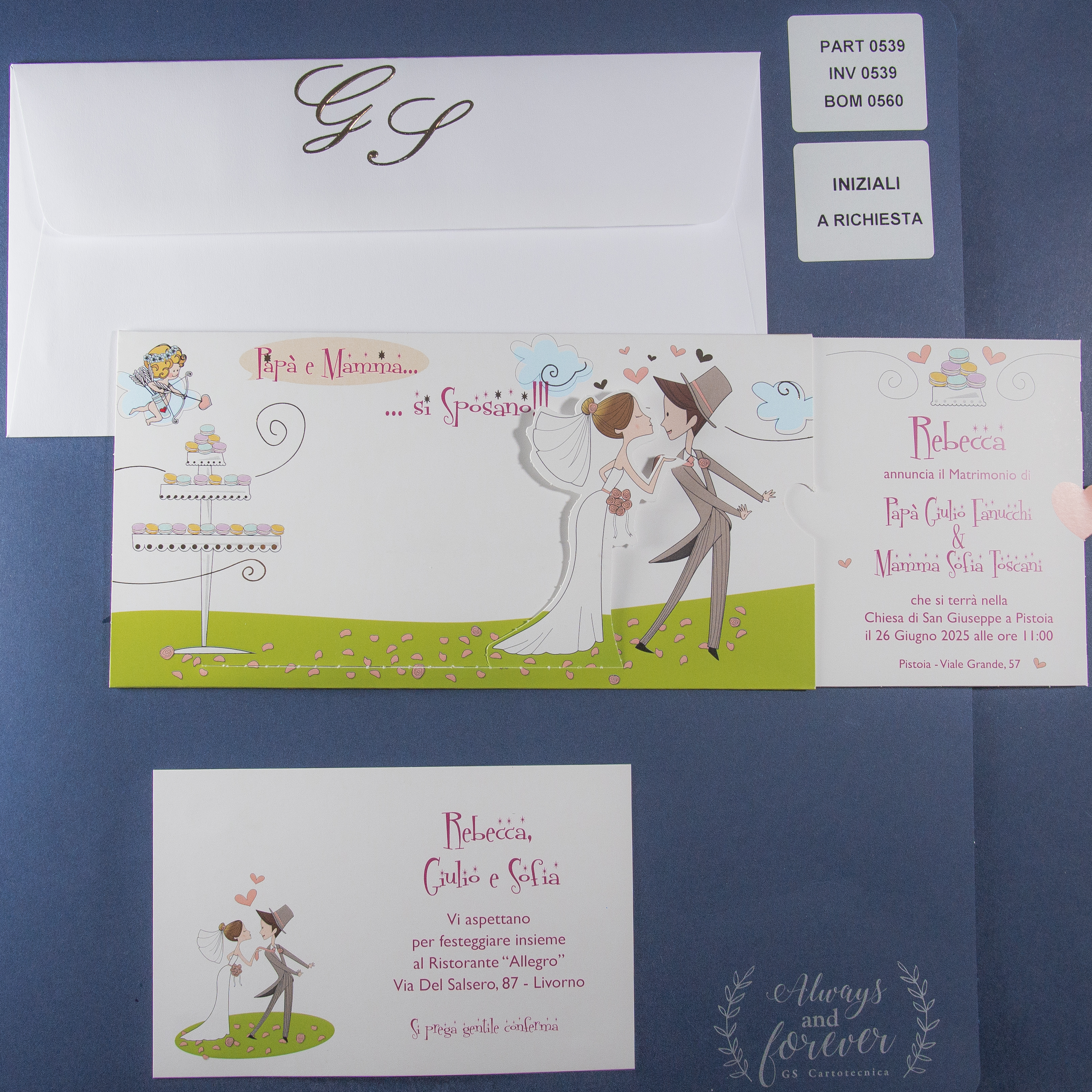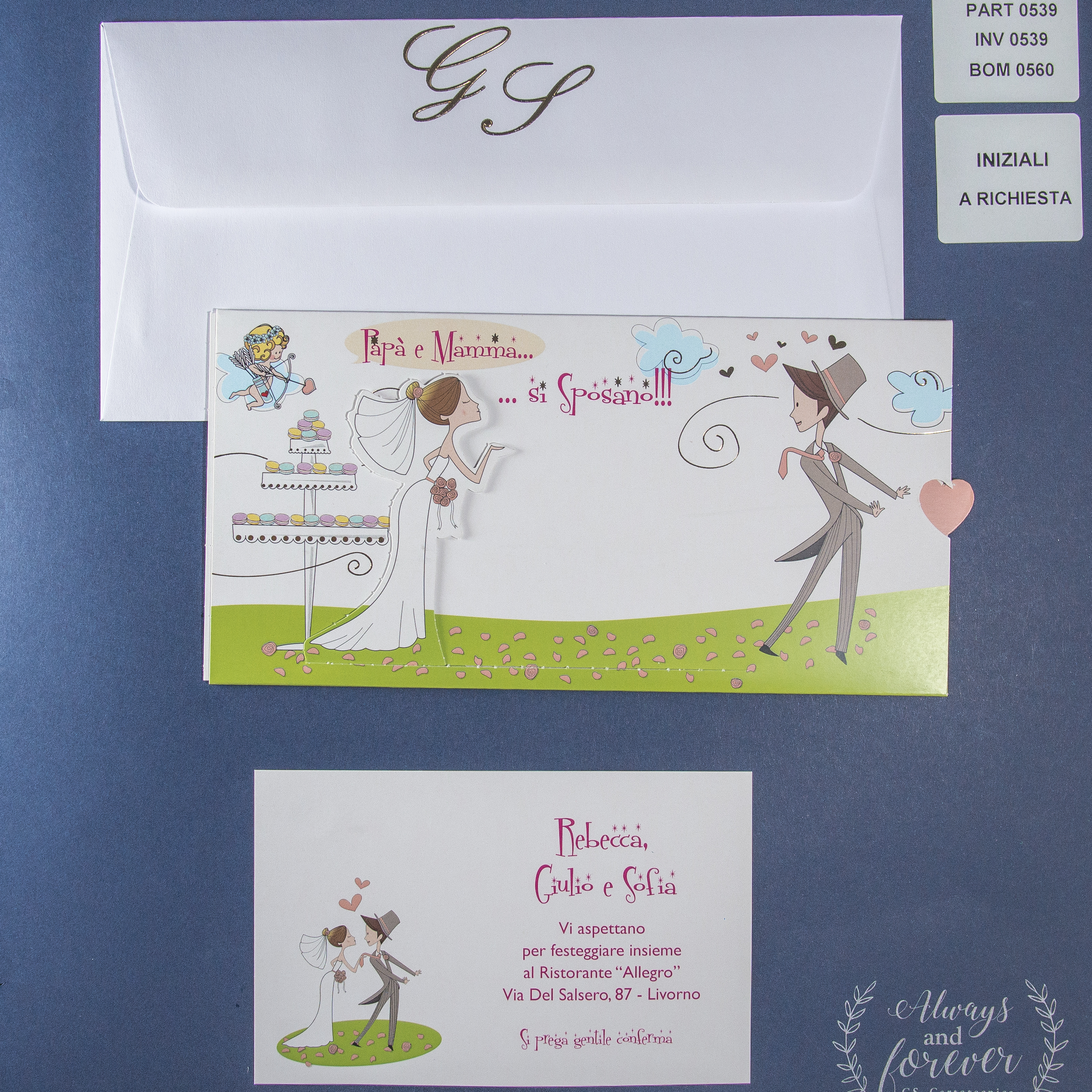 Possibilità di aggiungere le inziali degli sposi direttamente sulla busta.