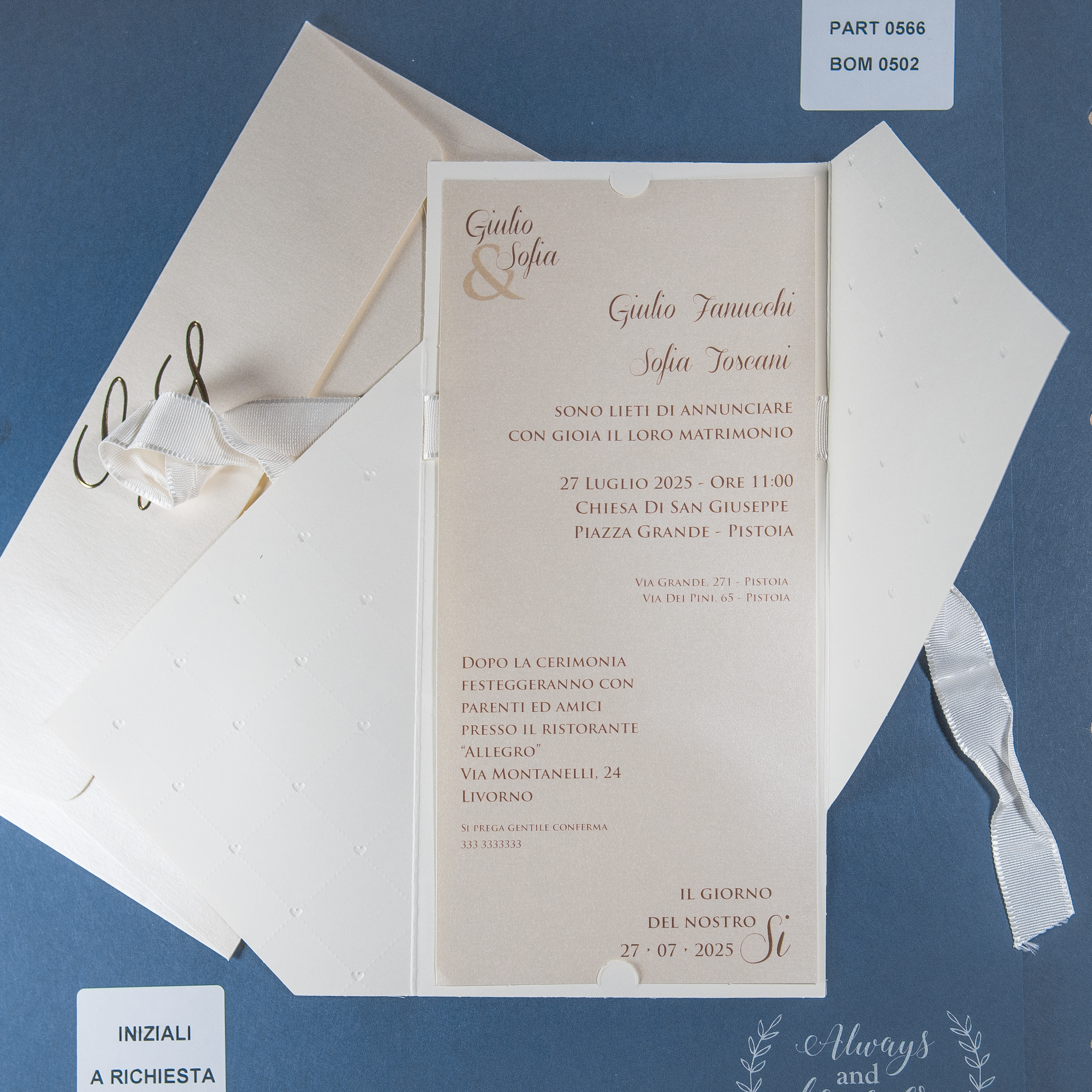 Possibilità di aggiungere le inziali degli sposi direttamente sulla busta.