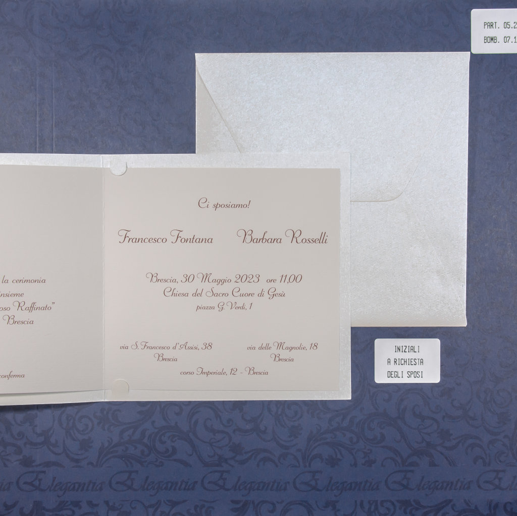 Possibilità di aggiungere le inziali degli sposi direttamente sull'invito o sulla busta