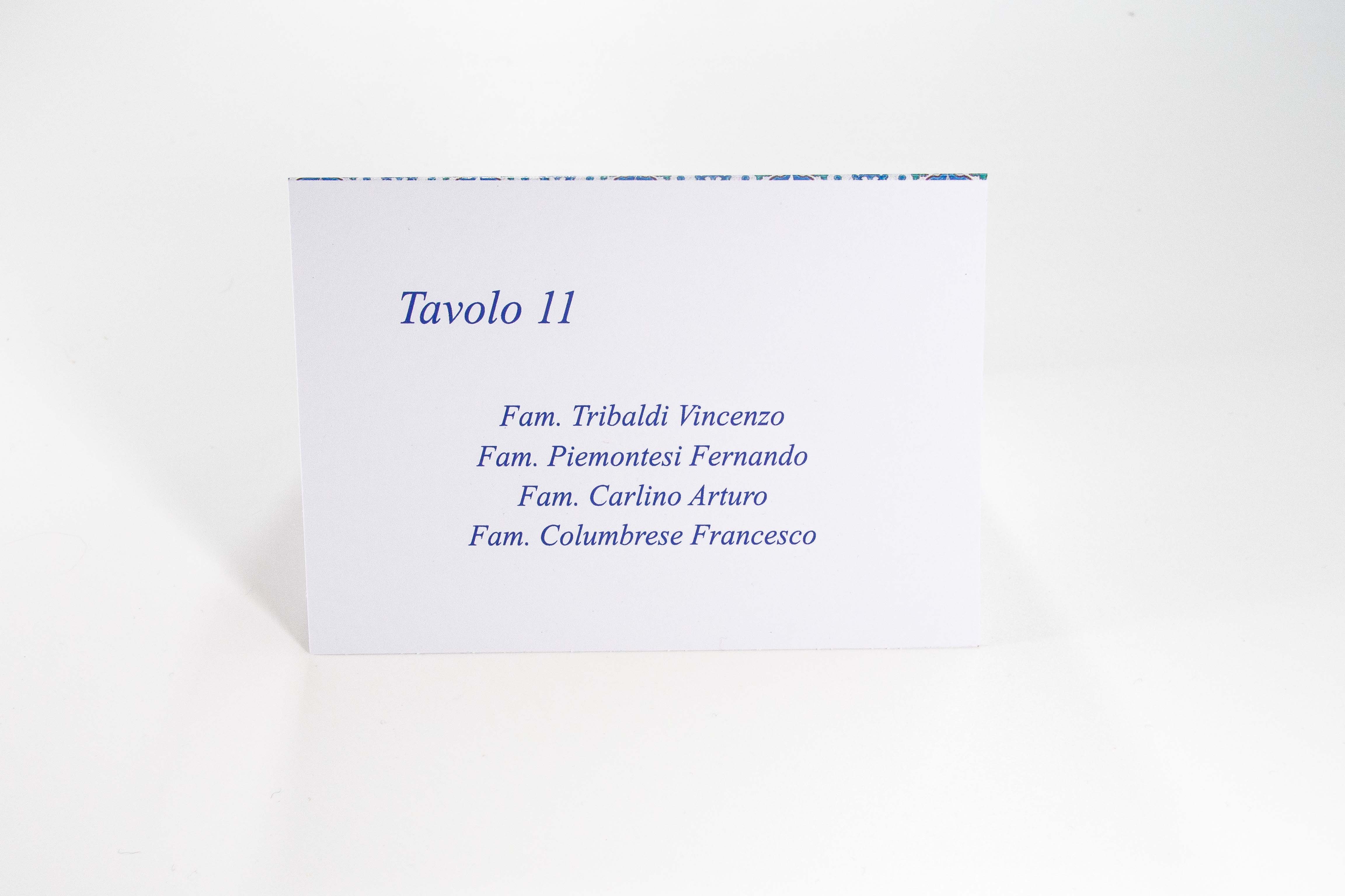 Pratico Cavaliere Segnatavolo in cartoncino personalizzabile con grafica a vostra scelta, su cui stampare il numero/nome del tavolo e i commensali.