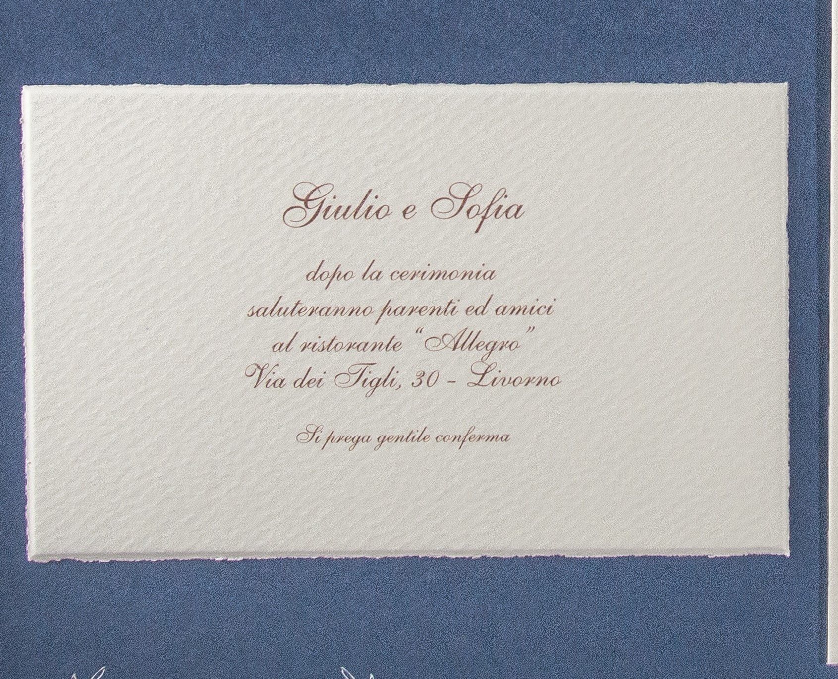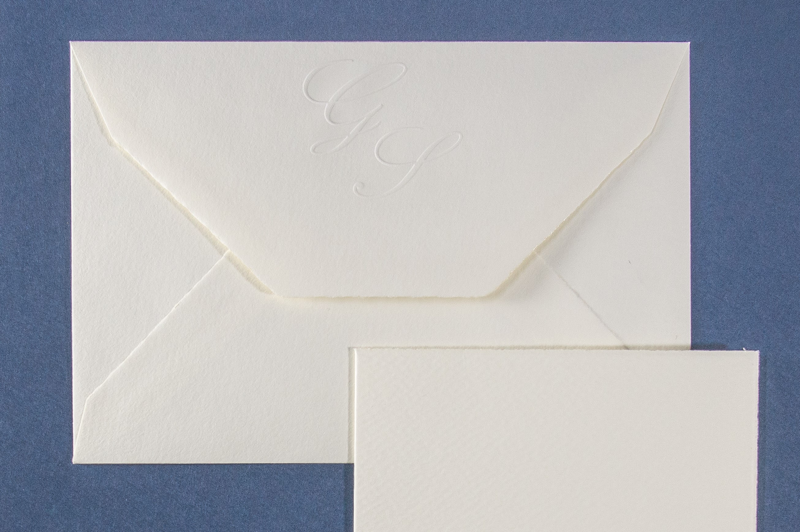 Partecipazione di matrimonio Classica in carta Magnani color avorio con Taglio a mano. Invito ristorante a parte.