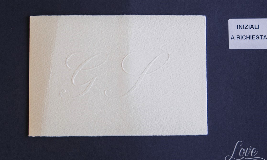 Possibilità di aggiungere le inziali degli sposi direttamente sulla partecipazione e/o sulla busta